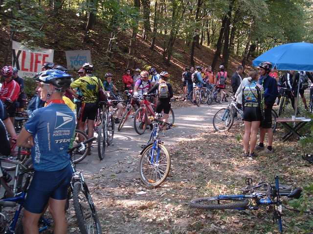 участок и крутой спуск по тропинке. Скорость, визг дисковых тормозов, пыль, обгоны! Супер!!!